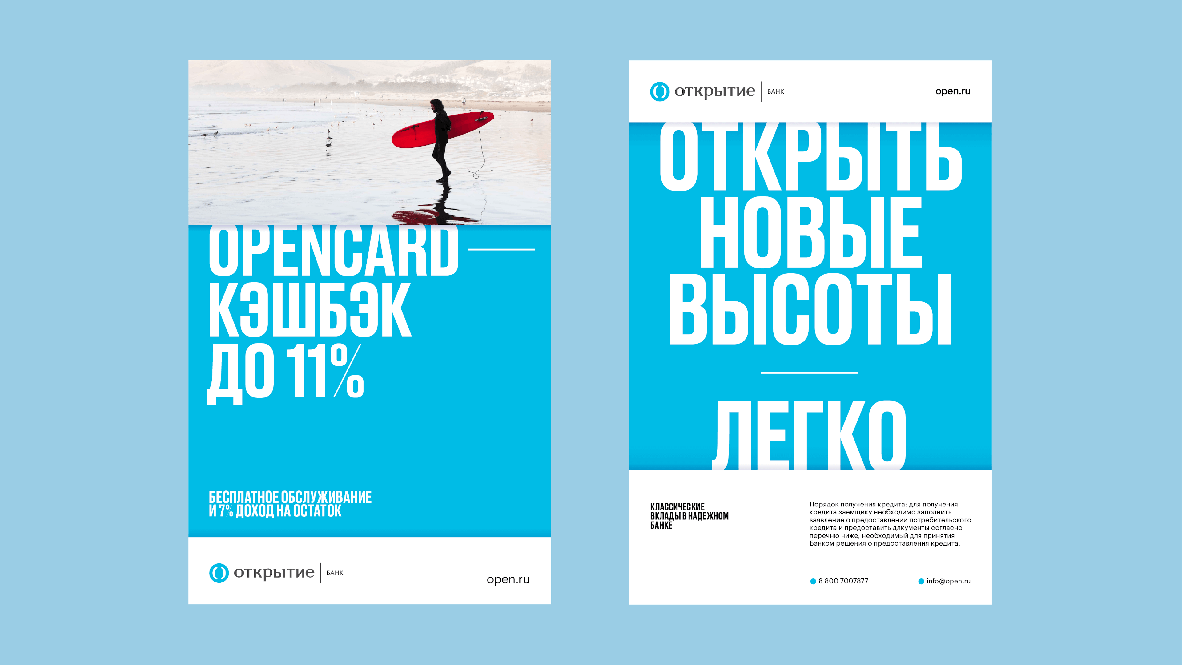 Otkritie Bank launched a new positioning — A reliable bank of our time. The visual identity builds on the idea of opening as a metaphor, turning it into a dynamic graphic system that reflects transparency, confidence, and forward movement.